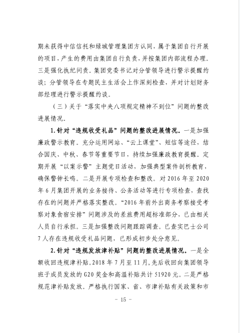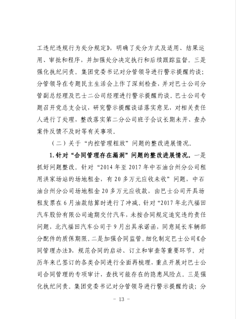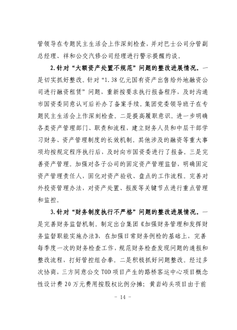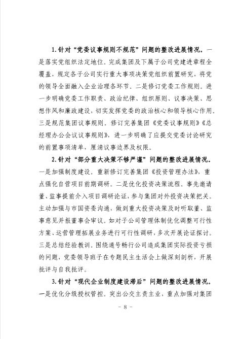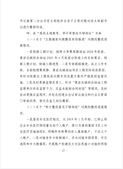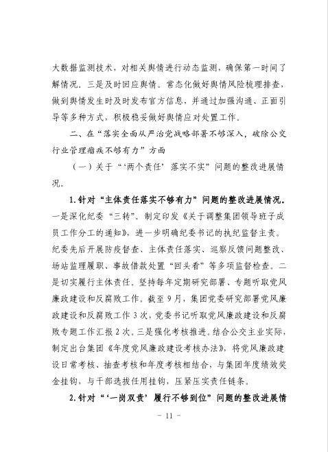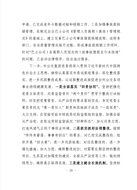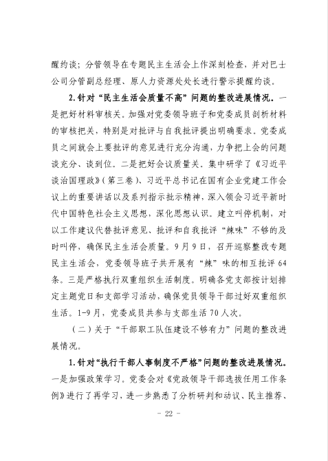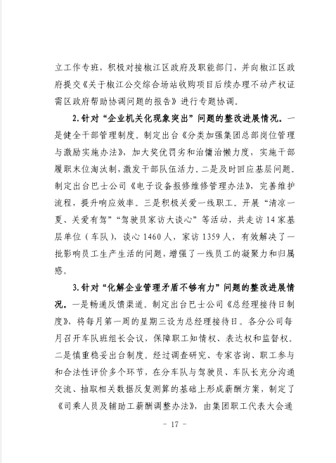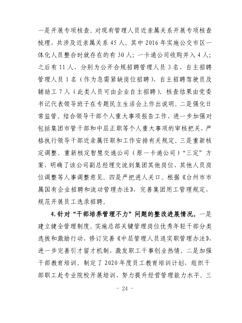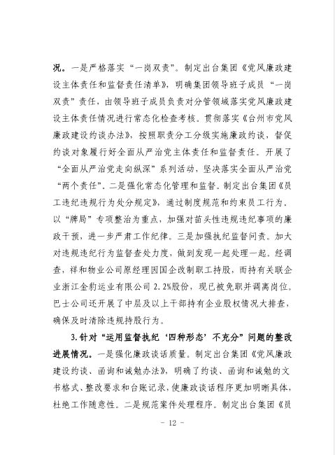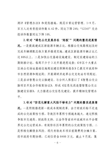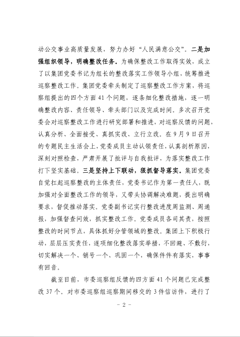 中共臺州市公共交通集團有限公司委員會關于巡察整改進展情況的通報