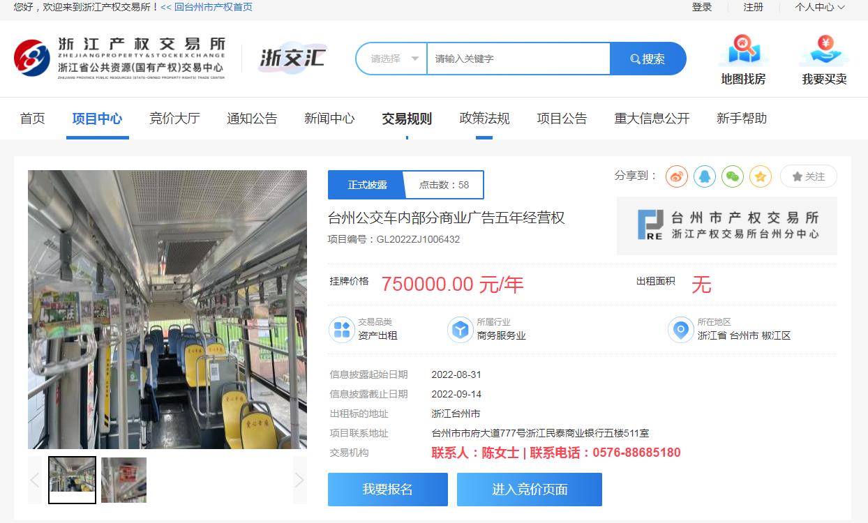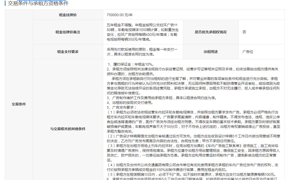 臺州公交車內(nèi)部分商業(yè)廣告五年經(jīng)營權