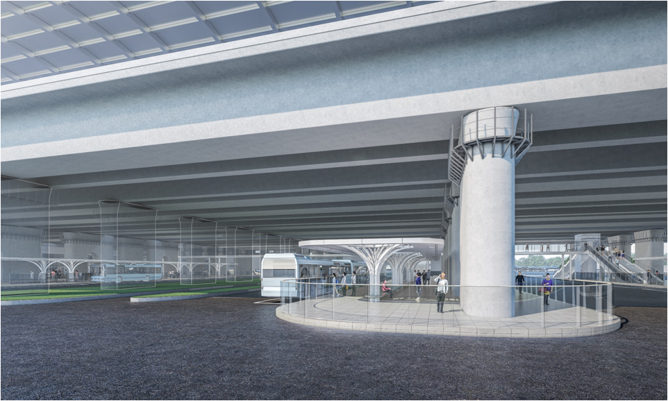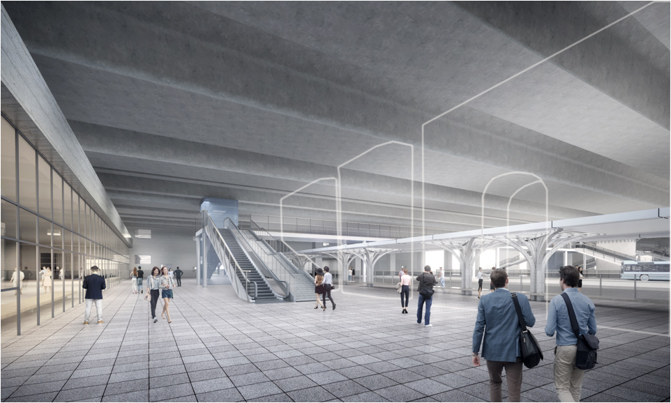 目前,公交候車(chē)廳、公交管理用房、出租候車(chē)廳3座房屋和1座人行天橋的主體結(jié)構(gòu)已全面完成,正在開(kāi)展室內(nèi)裝修工程、站臺(tái)石材鋪裝、幕墻龍骨安裝等分項(xiàng)工程施工。?