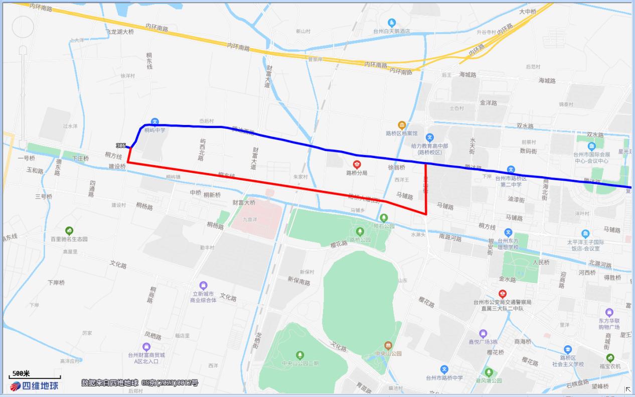 四、311路,湖濱路南與路橋電力大廈間,臨時調(diào)整為經(jīng)財富大道、路橋大道運行。臨時取消桐嶼中學、公交三公司、桐嶼建設、桐嶼小學、恩澤醫(yī)院等5對站點。同時,臨時增加停靠財富大道騰達路口1對站點。