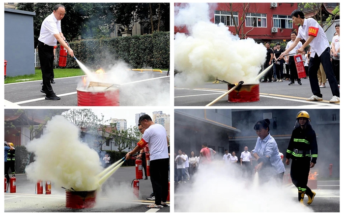 在隨后開展的消防實(shí)操培訓(xùn)環(huán)節(jié)中,安全管理人員就如何正確使用滅火器滅火向全體員工進(jìn)行演示講解。集團(tuán)領(lǐng)導(dǎo),各部門、子公司工作人員,保安、保潔等輪番上場(chǎng),用滅火器在火源上風(fēng)口,對(duì)火焰根部進(jìn)行“滅火”。