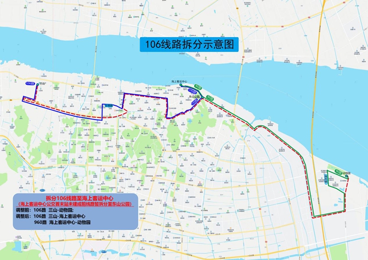 1.首末站:三山-海上客運中心(海上客運中心公交站未建成前線路暫拆分至東山公園站)。