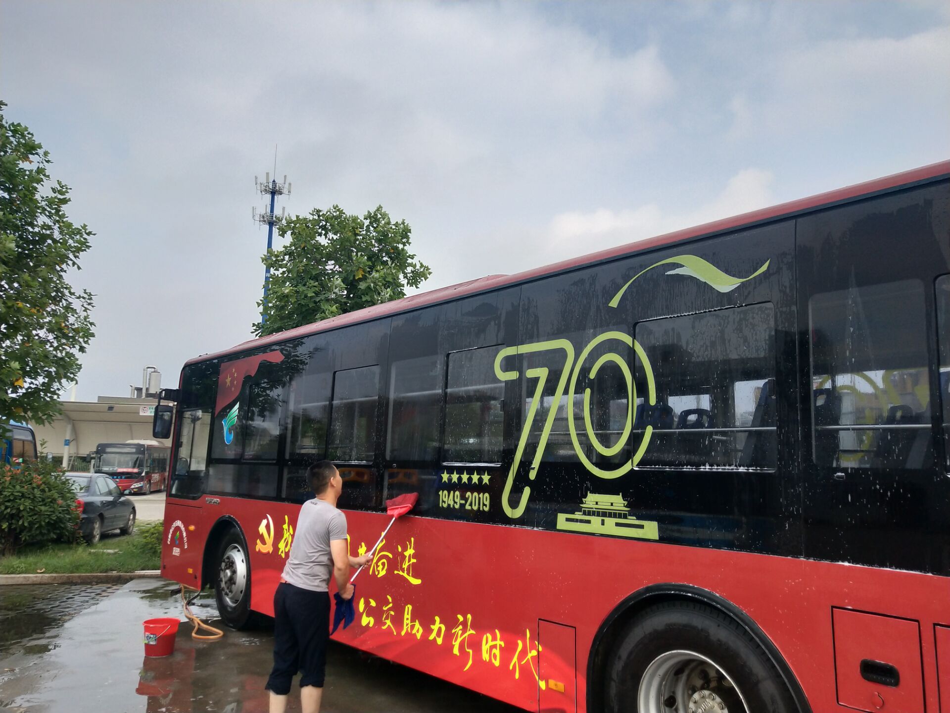 由于車身印有鮮艷的紅旗、70周年標志及“我與祖國共奮進,公交助力新時代”宣傳語,車輛無法用洗車機自動清洗。7月22日,駕駛員陳仙根早早來到車隊,拿著毛巾手動清洗,車廂內外的每一個角落,陳師傅都仔仔細細地一點點擦拭。陳師傅說:“車輛干凈整潔是為了讓拍攝效果更好,公司將這個光榮的任務交給我,是對我信任,再苦再累都不怕。2009年回到臺州,我就進入了公交行業(yè),親身經(jīng)歷了臺州公交從三區(qū)‘分治’到市區(qū)一體化,從大通道柴油車到新能源車輛,從人工售票到移動支付,這些天翻地覆的變化,讓我更深刻地感覺到祖國越來越強大?!?/span>