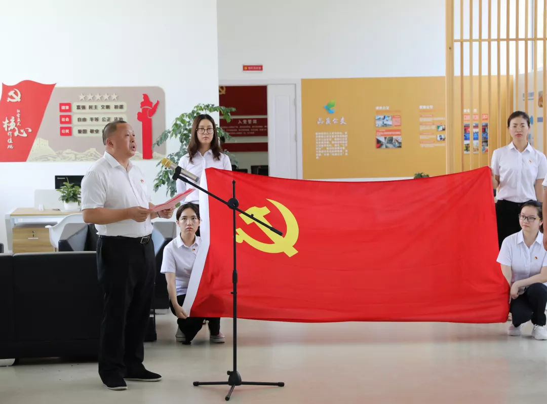 隨后,集團(tuán)黨委書記石再國代表集團(tuán)黨委向新黨員表示衷心的祝賀。他強(qiáng)調(diào),入黨宣誓是黨員政治生命開始的象征,黨旗代表了黨,誓詞概括了黨對(duì)黨員的要求,也概括了黨員對(duì)黨組織和黨的事業(yè)承擔(dān)的政治責(zé)任。在當(dāng)前全黨深入推進(jìn)“不忘初心 牢記使命”主題教育活動(dòng)的新形勢(shì)下,石再國對(duì)全體黨員提出了三點(diǎn)要求:一是要加強(qiáng)黨性修養(yǎng),從思想上真正入黨;二是要立足本職工作,發(fā)揮先鋒模范作用;三是要不忘初心使命,自覺踐行黨的宗旨。他希望每位黨員不忘入黨初心,謹(jǐn)記入黨誓詞,不斷提高對(duì)黨的事業(yè)的責(zé)任感和使命感。在今后的學(xué)習(xí),工作和生活中,以實(shí)際行動(dòng)來踐行自己的誓言,充分發(fā)揮共產(chǎn)黨員的先鋒模范帶頭作用。