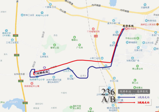 線路走向:院橋車站—路院一級公路—財富大道—恩澤醫(yī)院(上下行線路一致)